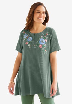 Our Classic Flannel Shirt has options for traditional ladies, as well as unique hues and prints that provide a welcome twist. In addition to red plaid, it’s available in a graphic floral and varying colored plaids. Try rosebud, deep turquoise, and purple multi for a fresh fall look.